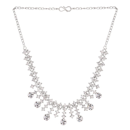 Jewellery Set for Women and Girls Crystal Jewellery Set for Women| Silver Tone Crystal Choker Necklace Set | Birthday Gift for girls and women Anniversary Gift for Wife