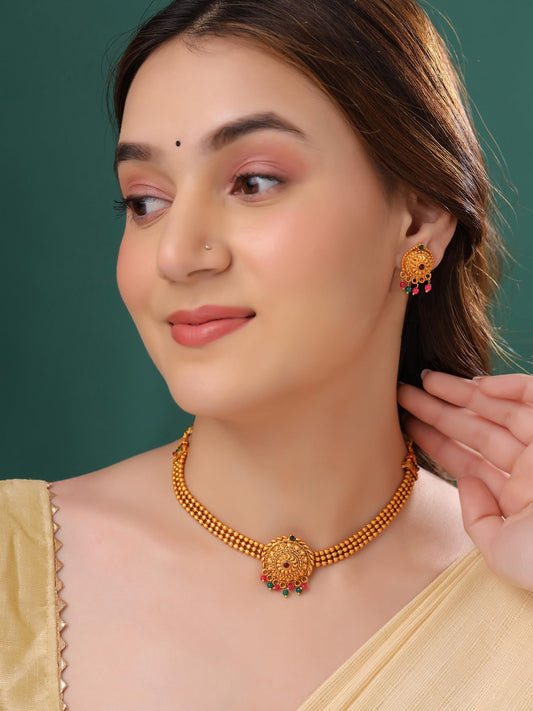 Jewellery Set For Women | Ethnic Gold Plated Choker Necklace Set for Women | Traditional Jewellery Sets For Girls | Birthday Gift for Girls & Women Anniversary Gift for Wife