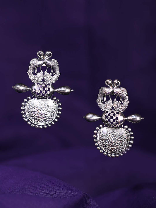 German Silver Oxidized Afgani Tribal Peacock Designer Drop Earring for Women And Girls (German Silver)