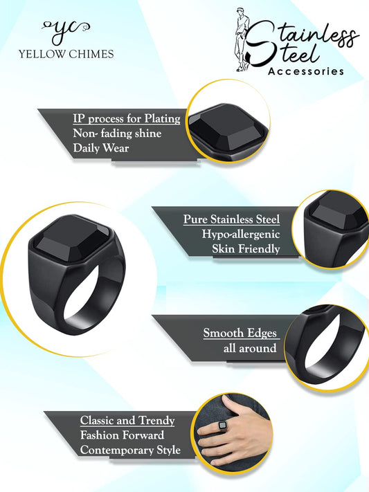 Rings for Men Stainless Steel Black Ring Square Shaped Crystal Black Steel Ring for Men and Boys.