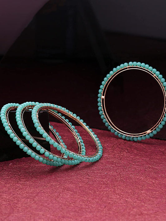 Classic Design Handcrafted Beads Studded Gold Plated 4 Pcs Green Beaded Bangles Set For Women & Girls (2.8)