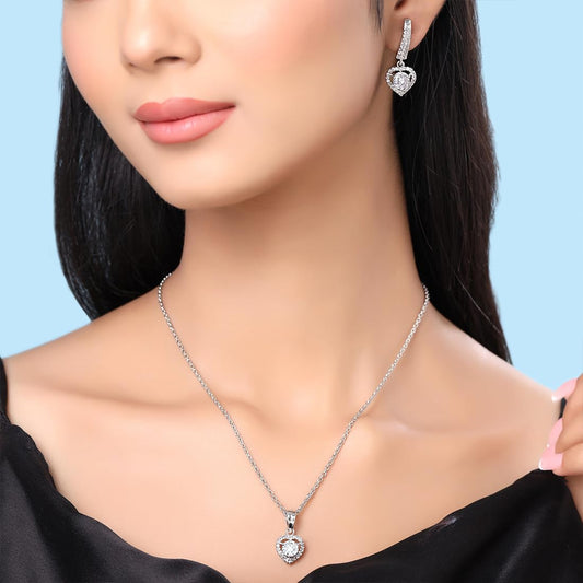Pendant for Women and Girls Crystal Pendant for Women | Heart Designed White Stone Studded Crystal Pendent Set | Birthday Gift for girls and women Anniversary Gift for Wife