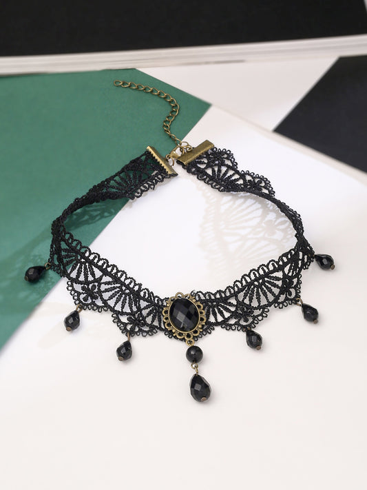 Necklace For Women Black Fabric Lace With Black Stone Hanging Choker Necklace For Women and Girls