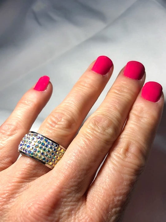 Ring For Women Silver Tone Crystal Studded Band Style Elegant Ring For Women and Girls