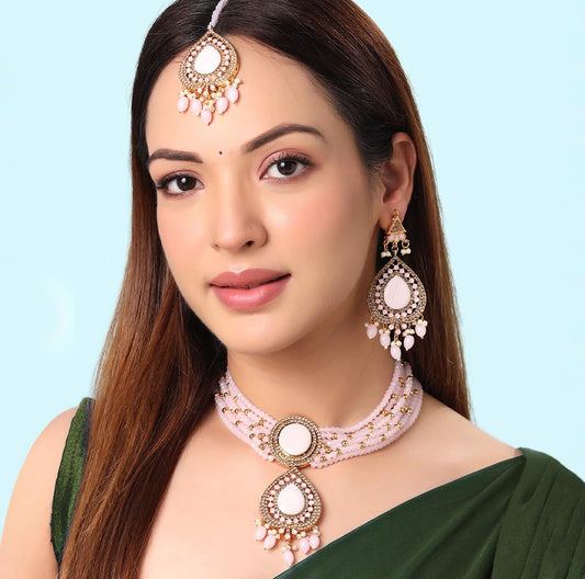 Jewellery Set For Women Multilayered Pink Beads Necklace Set Traditional Gold Plated Ethnic Beads Birthday Gift for Girls & Women Anniversary Gift for Wife