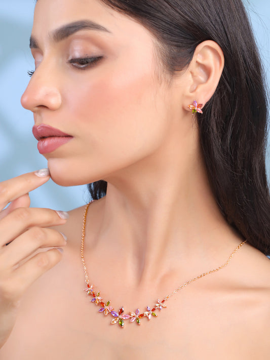 Fashion Jewellery Set for Women Florets Charms Swiss Cubic Zirconia 18K Rose Gold Plated Necklace Set for Women and Girls