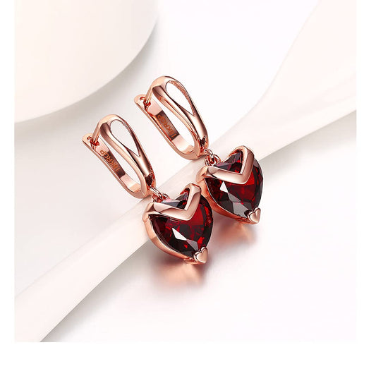 Earrings for Women and Girls Red Stone Crystal Drop Earrings | Rose Gold Plated Valentine Heart Shape Drop Earrings | Birthday Gift for girls and women Anniversary Gift for Wife