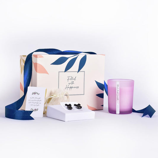 Combo: Crystal Drop Earrings & Fairy Tale Rose Candle | Multi-Occasion Gift Set | Elegant Gift Box