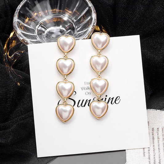 Dangler Earrings for Women | Heart Shaped Multicolor Gold Toned Earrings | Long Chain Gold Plated Dangler Earrings | Birthday Gift For Girls Anniversary Gift for Wife