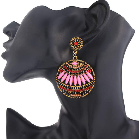 Gold Toned Pink Beads Circle Drop Earring for Women and Girls