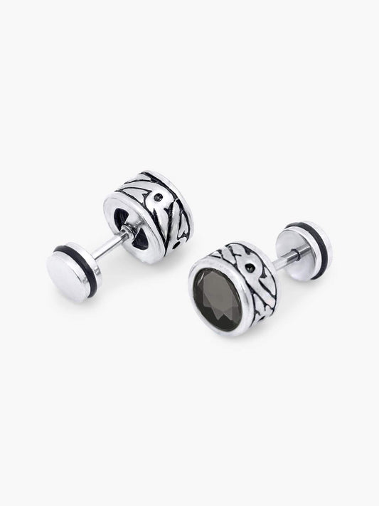 Black Crystal Sides Craft 316L Stainless Steel Earrings for Men and Women
