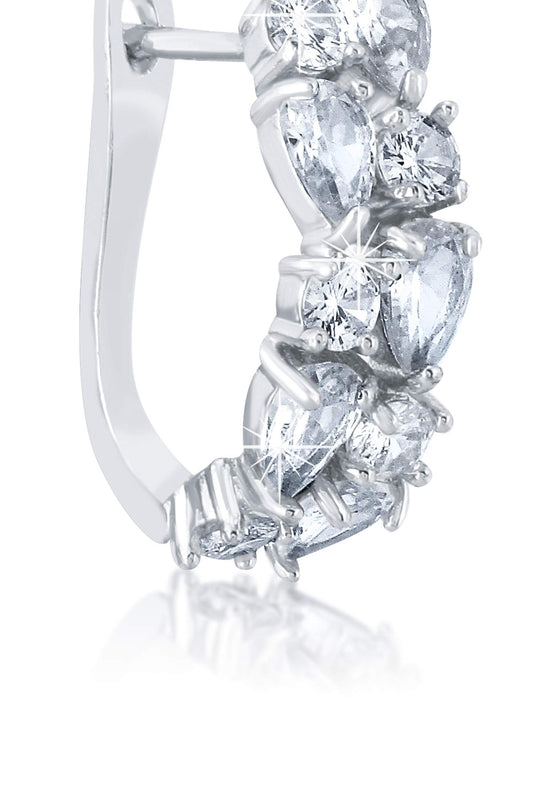 Trendy And Elegant A5 Grade Sparkling Crystals Silver Plated Stylish Clip-on Hoops Earrings for Women & Girls