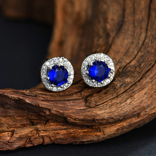 Elegant Latest Fashion Silver Plated Blue Crystal designer Stud Earrings for Women and Girls (Blue)
