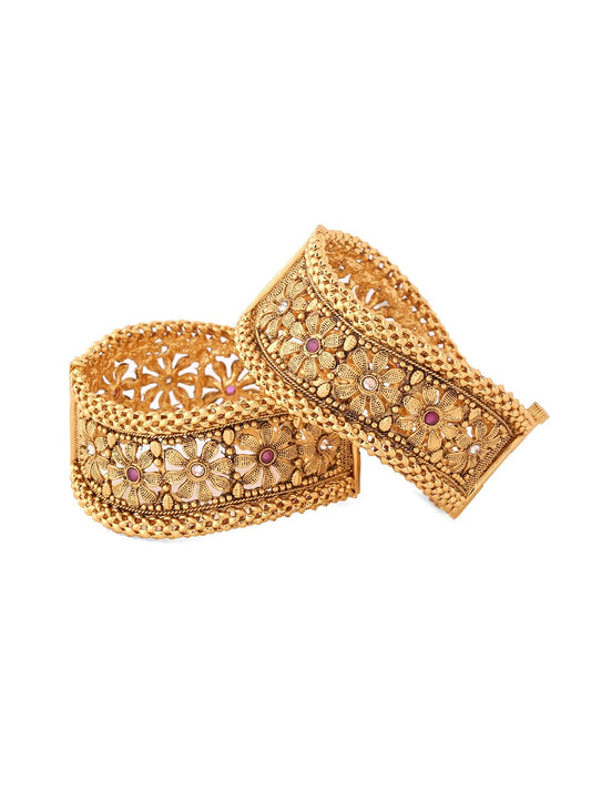 Bangles for Women Gold Toned Kundan and Red Pearl Studded Floral Designed Bangles for Women and Girls
