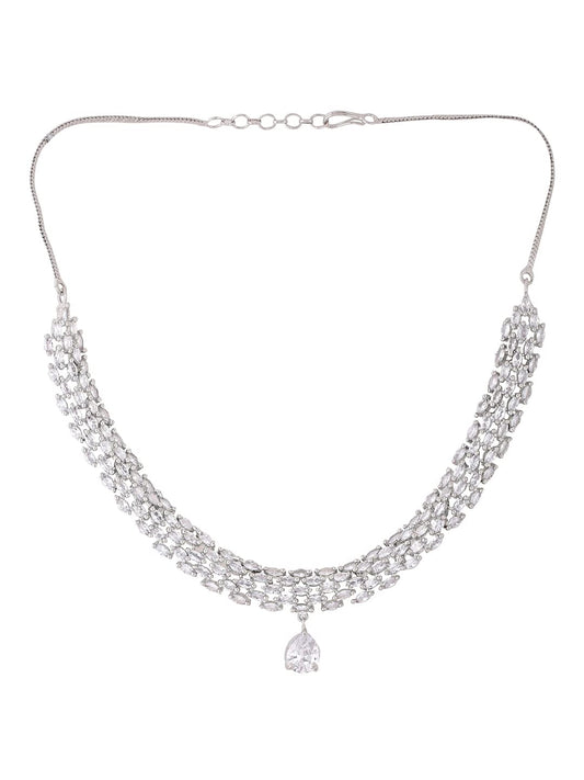 Jewellery Set for Women and Girls American Diamond Jewellery Set | Rhodium Plated White AD Necklace Set for Women | Birthday Gift for girls and women Anniversary Gift for Wife