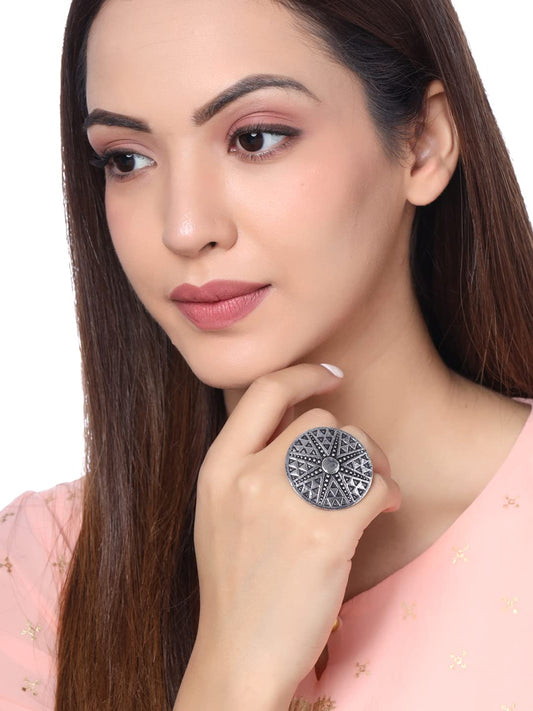 Rings for Women and Girls | Traditional Silver Oxidised Ring Set | Floral Shaped Adjustable Oxidised Rings for Girls | Floral Shaped Combo for Women | Accessories Jewellery for Women | Birthday Gift for Girls and Women Anniversary Gift for