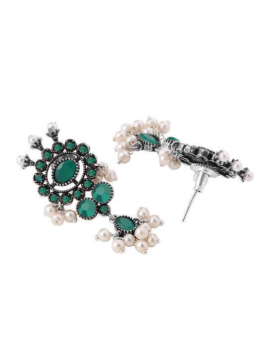 Oxidised Jewellery Set for Women Silver Oxidised Green Studded Stones Choker Necklace Set for Women and Girls.