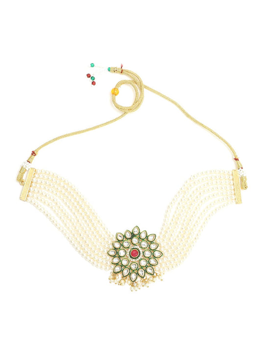 Kundan Jewellery Set for Women Multilayed Pearl Choker Necklace Set Gold Plated Traditional Necklace Set for Women and Girls.