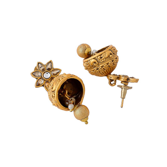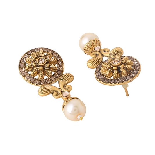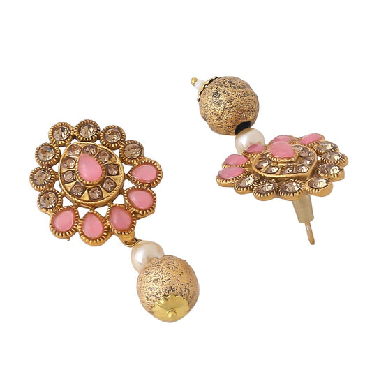 Ethnic Gold Plated Kundan Studded Pearl Dangler Earrings for Women and Girls, medium (YCTJER-626MFLW-PCH), gold, peach