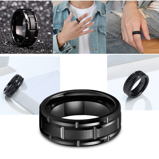 Rings for Men Stainless Steel Black Ring Brick Pattern Band Finger Ring for Men and Boys.