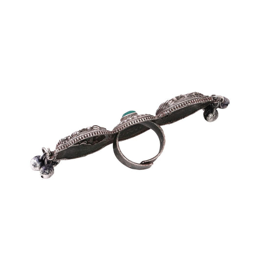 Rings for Women & Girls Traditional Silver Oxidised Ring | Big Charm Adjustable Oxidised Rings |Green Stone Studded Ring | Birthday Gift For girls & women Anniversary Gift for Wife