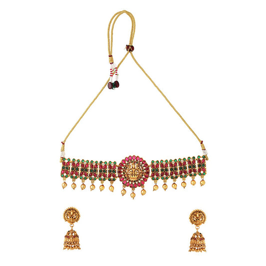 Jewellery Set for Women and Girls Temple Jewellery Set for Women | Gold Tone Kundan Studded Temple Choker Necklace Set | Birthday Gift for girls and women Anniversary Gift for Wife