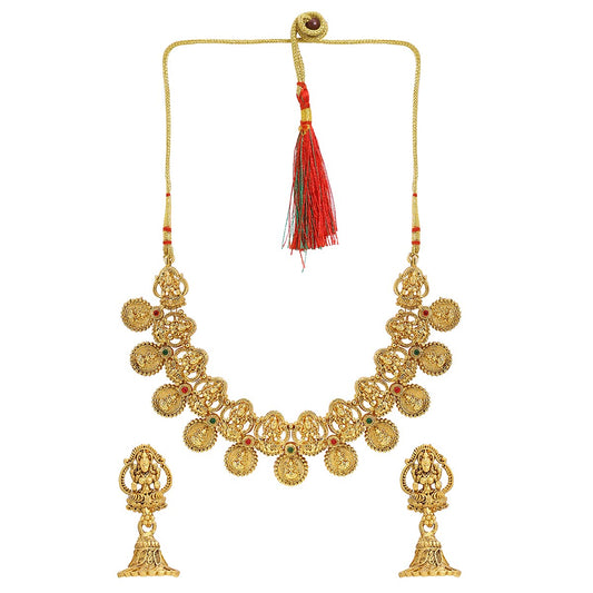 Jewellery Set For Women Gold Plated Traditional Choker Necklace Set with Earrings Temple Jewellery Set For Women and Girls