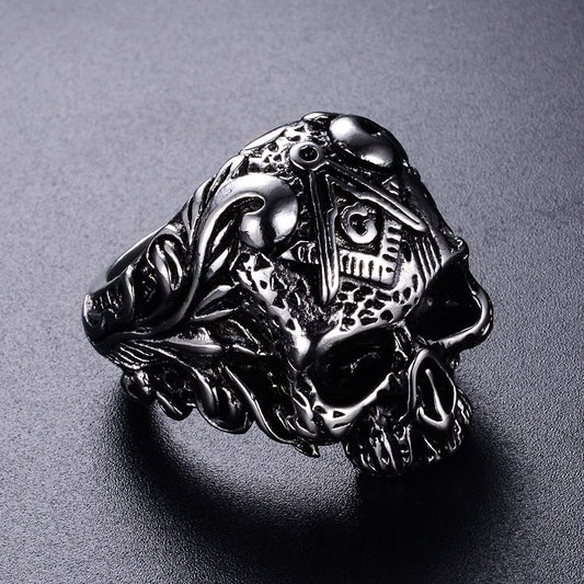 Rings for Men Stainless Steel Silver Black Skull Design Band Ring for Men and Boys.