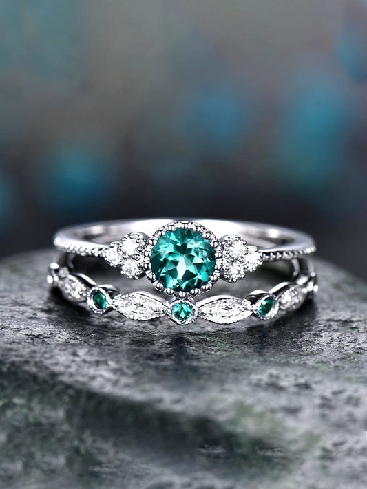 Rings for Women and Girls Stack Ring | Silver Tone Green Crystal Studded Finger Ring for Women | Birthday Gift For girls and women Anniversary Gift for Wife
