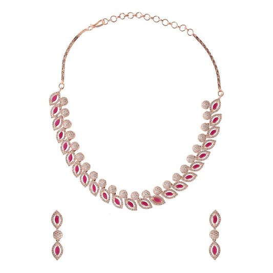 Jewellery Set for Womens Rosegold Plated AD/American Diamond Studded Pink Crystal Necklace Set with Earrings for Women and Girls