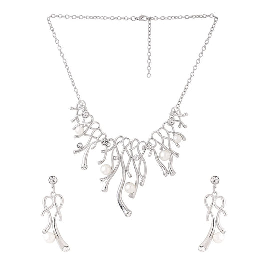 Jewellery Set For Women Silver Toned Pearl Studded Necklace Set With Earring For Women and Girls