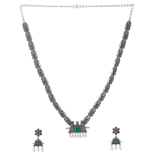 Jewellery Set for Women and Girls Traditional Silver Oxidised Jewellery Set | Peacock Designed Stone Oxidized Necklace Set | Birthday Gift For Girls and Women Anniversary Gift for Wife