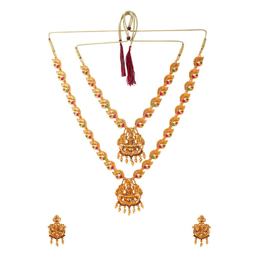 Jewellery Set for Women Gold Plated Temple Bridal Choker Necklace with Long Necklace and Earrings for Womens and Girls