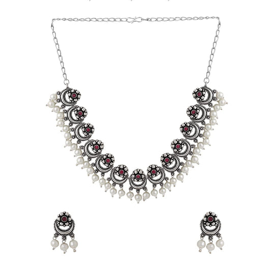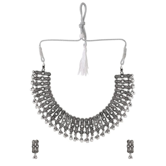 Jewellery Set for Women and Girls Traditional Silver Oxidised Jewellery Set | Stone Choker Necklace Set for Women | Birthday Gift For Girls and Women Anniversary Gift for Wife
