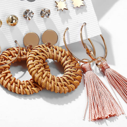Earrings Set for Women Combo of 6 Pairs Gold Plated Thread Tassel Stud Hoop Earrings Set for Women and Girls