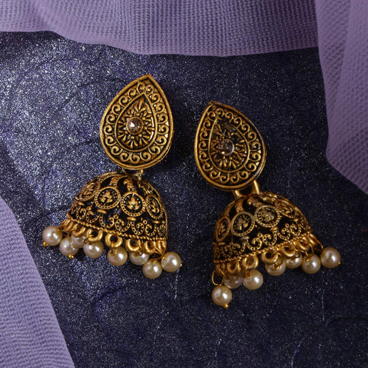 Traditional Jhumka/Jhumki Earrings Temple Jewellery Antique Oxidized Matte Gold Plated Pearl Earrings for Womens & Girls