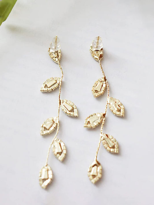 Earrings For Women Gold Tone Elegant Leaf Drop Long Dangle Earrings For Women and Girls