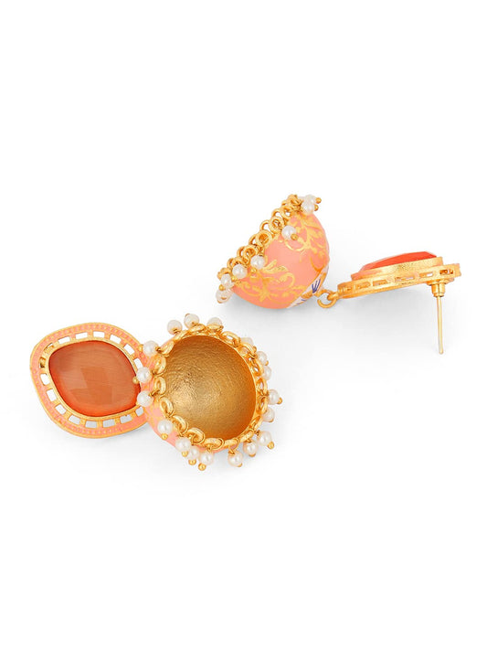 Earrings for Women Gold Toned Crystal Studded Beads Meenakari Jhumka Earrings for Women and Girls