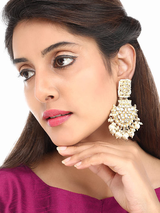 Chandbali Earrings for Women Ethnic Gold Plated Traditional Kundan Studded Moti Beads Chand bali Earrings for Women and Girls