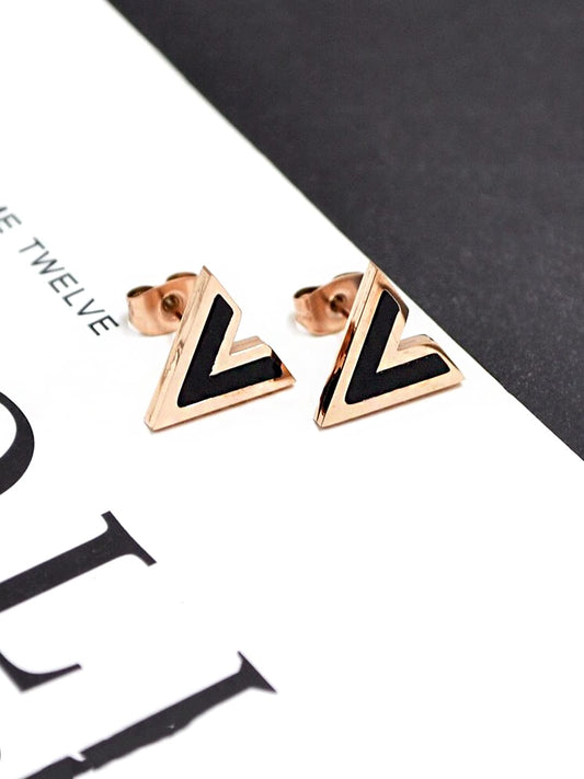 Stud Earrings for Women Western Rose Gold Plated Stainless Steel Black V-Shaped Studs Earrings For Women and Girls