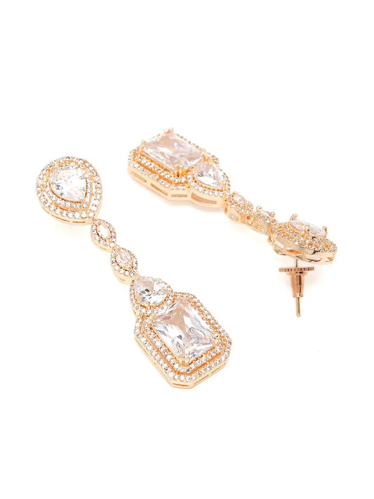 American Diamond Earrings for Women Rosegold Plated White American Diamond AD Studded Drop Earrings For Women and Girls