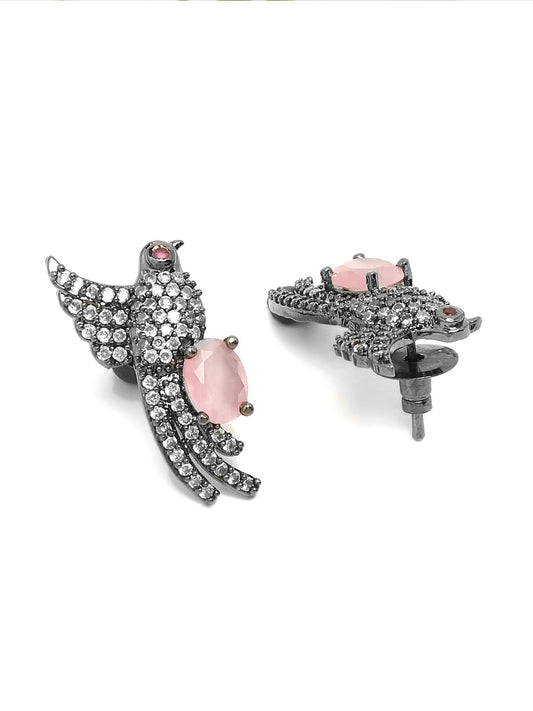 American Diamond Earrings for Women Rhodium-Plated Black AD-Studded Bird Design Stud Earrings for Women and Girls