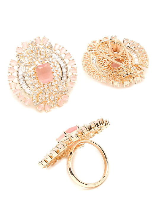 American Diamond Earrings for Women Rhodium-Plated RoseGold Toned AD-Studded Geometric Ring With Earrings Set for Women and Girls