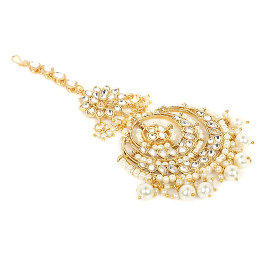 Traditional Chandbali Earrings Gold Plated Ethnic Kundan & Pearl Earring & Maangtikka Set for Women & Girls