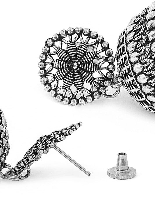 Oxidised Earrings for Women Silver Oxidised Chandbali Earrings Floral Design Ethnic Chand bali Earrings for Women and Girls.