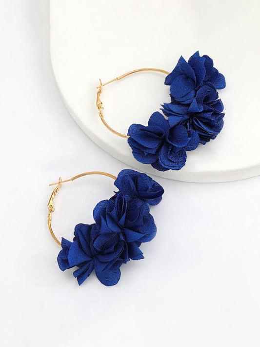 Earrings For Women Blue Color Boho Dangle Lace Cloth Mesh Yarn Chiffon Silk Handmade Flower Layered Petal Circel Hoop Jewelry Earrings for Women and Girls