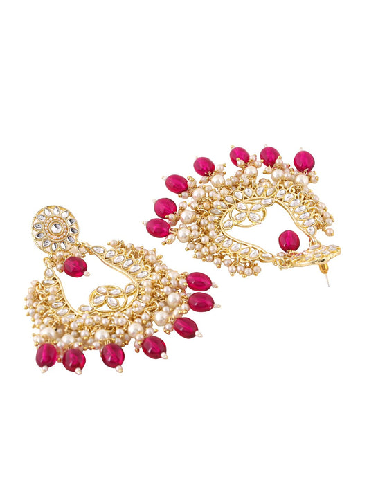 Earrings for Women Gold Toned Kundan Studded Pearl Drop Chandbali Designed Drop Earrings for Women and Girls