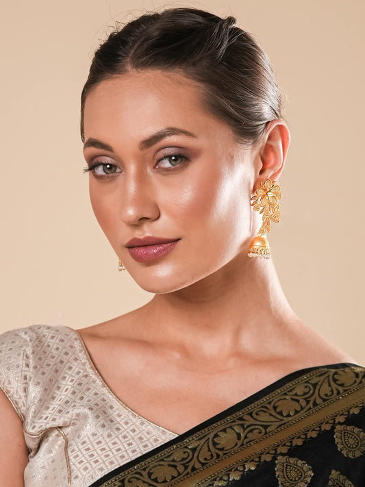 Jhumka Earrings for Women Traditional Gold Plated Floral Shaped Long Jhumka/Jhumki Earrings for Women and Girls