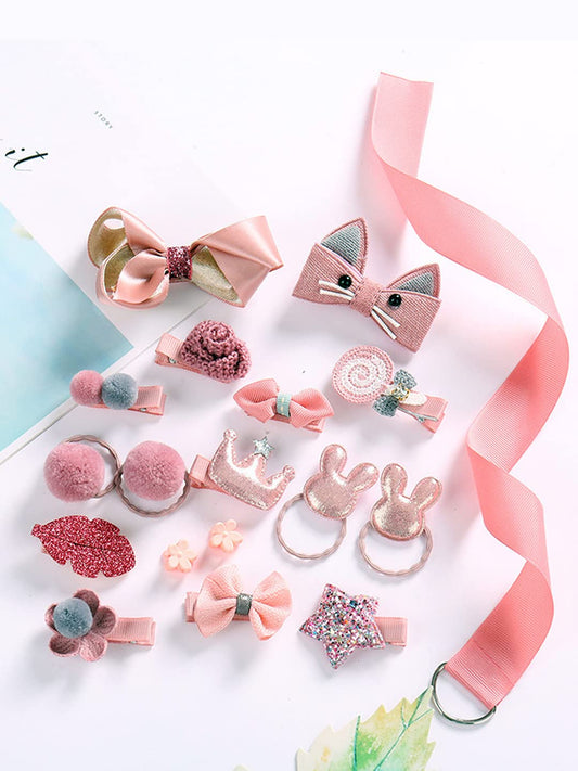 Hair Accessories for Girls Combo of Hair clips and Ponytail Holder with Cute chararcter emblished on it for Kids and Girls (Design 5)