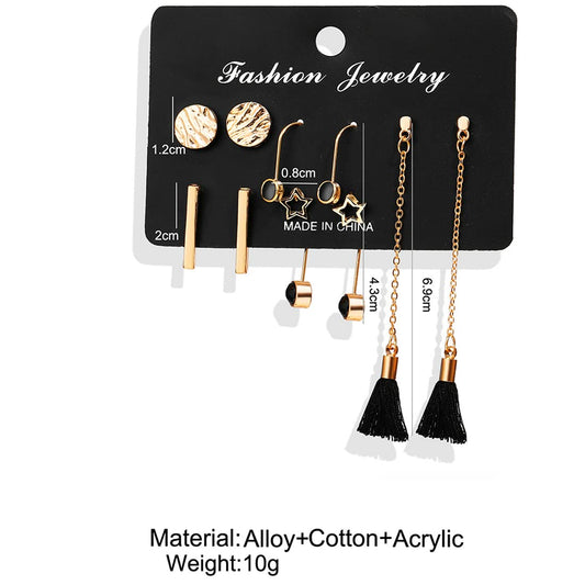 Hoop Earrings for Women Combo of 11 Pairs Gold Plated Black Thread Tassel Crystal Studded Geometric Shape Hoop Stud Earrings Set for Women and Girls